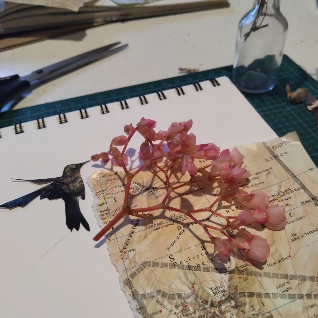 A través de talleres de escritura pensados para mujeres, mi intención es recuperar muchas voces silenciadas y crear un espacio común donde la lectura, la escritura y el collage se convierten en prácticas de encuentro, reflexión y creación colectiva.